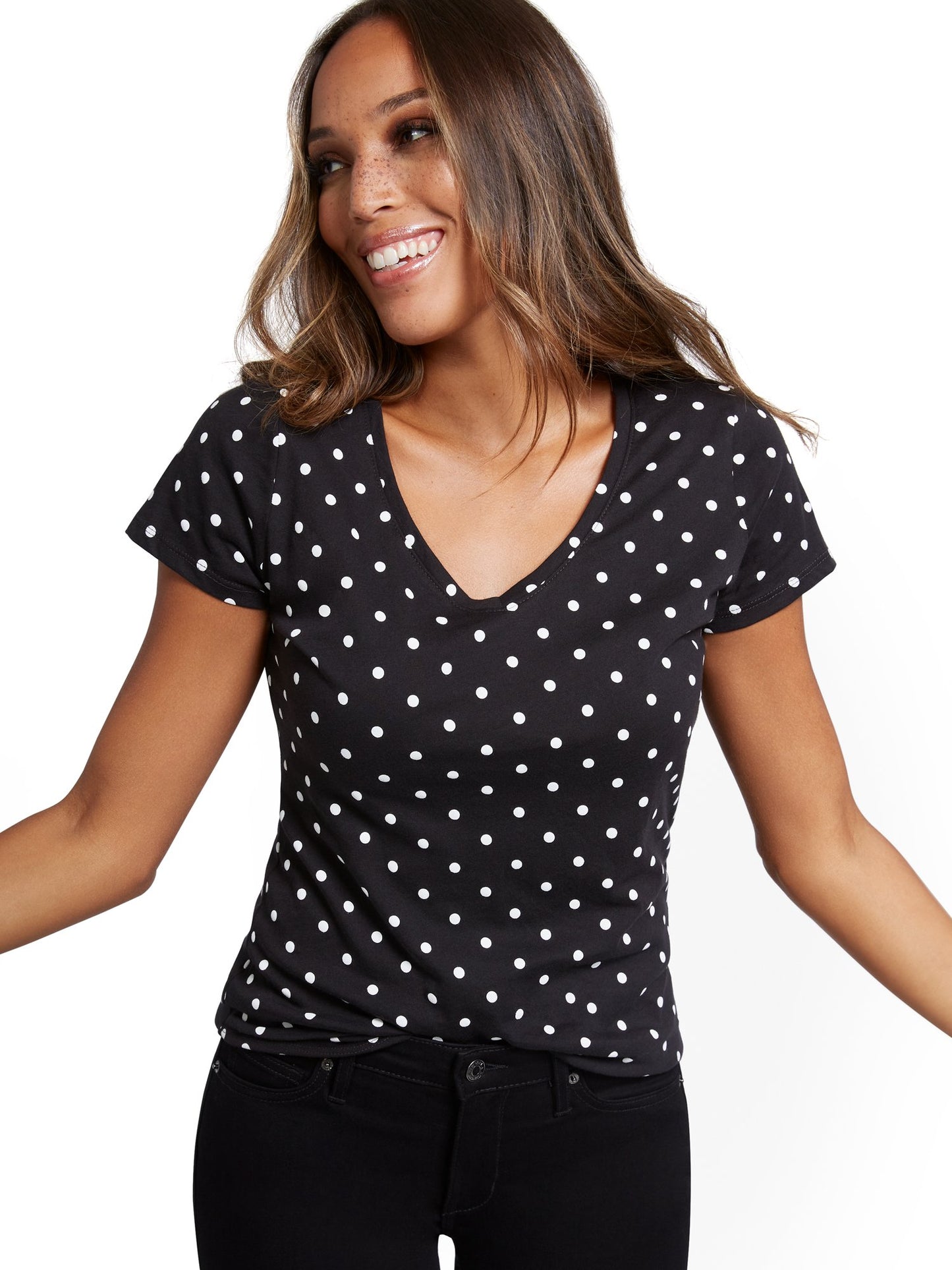 A v-neck silhouette creates a flattering effect on our essential, versatile Perfect Tee, designed in soft cotton.