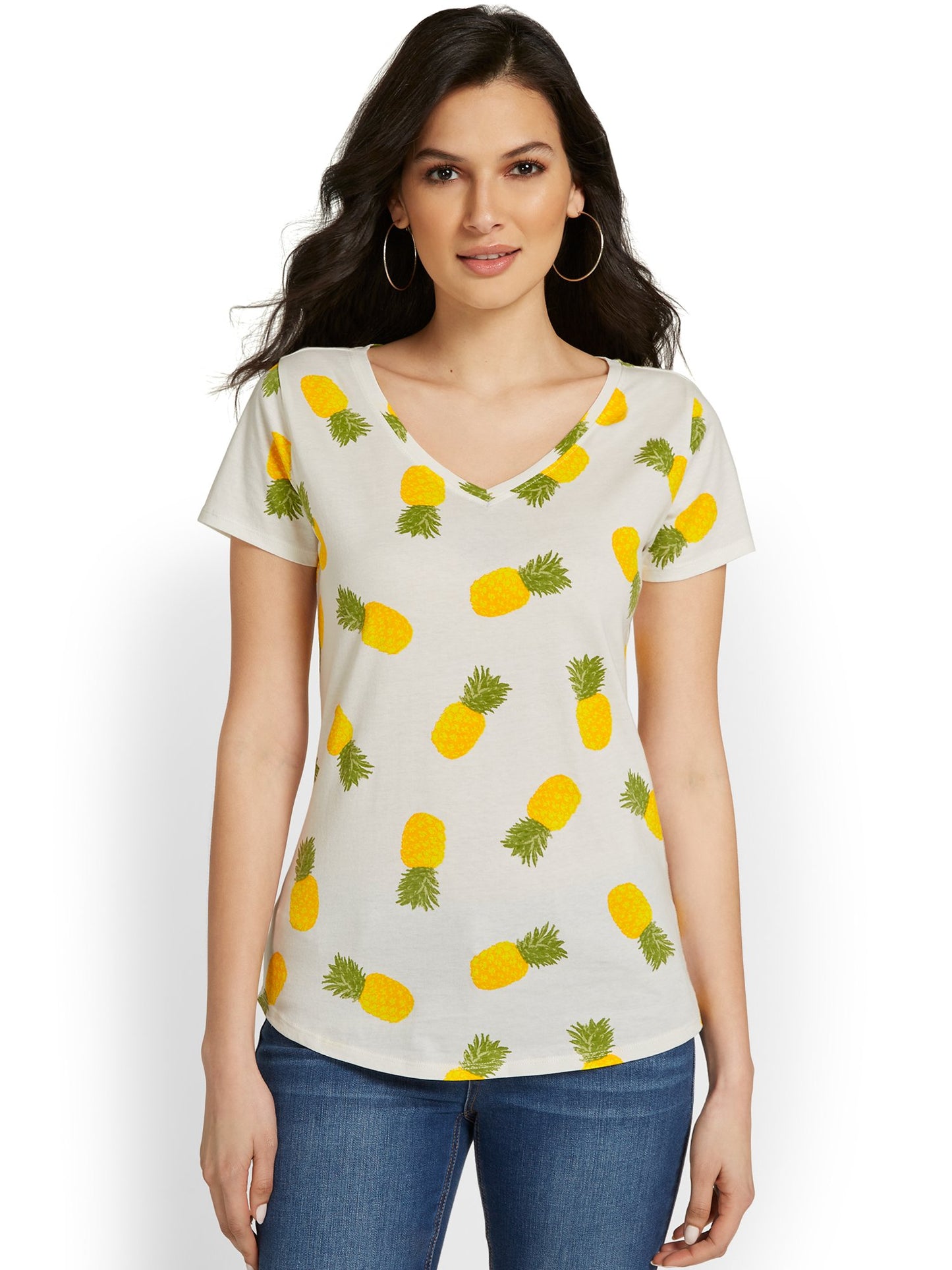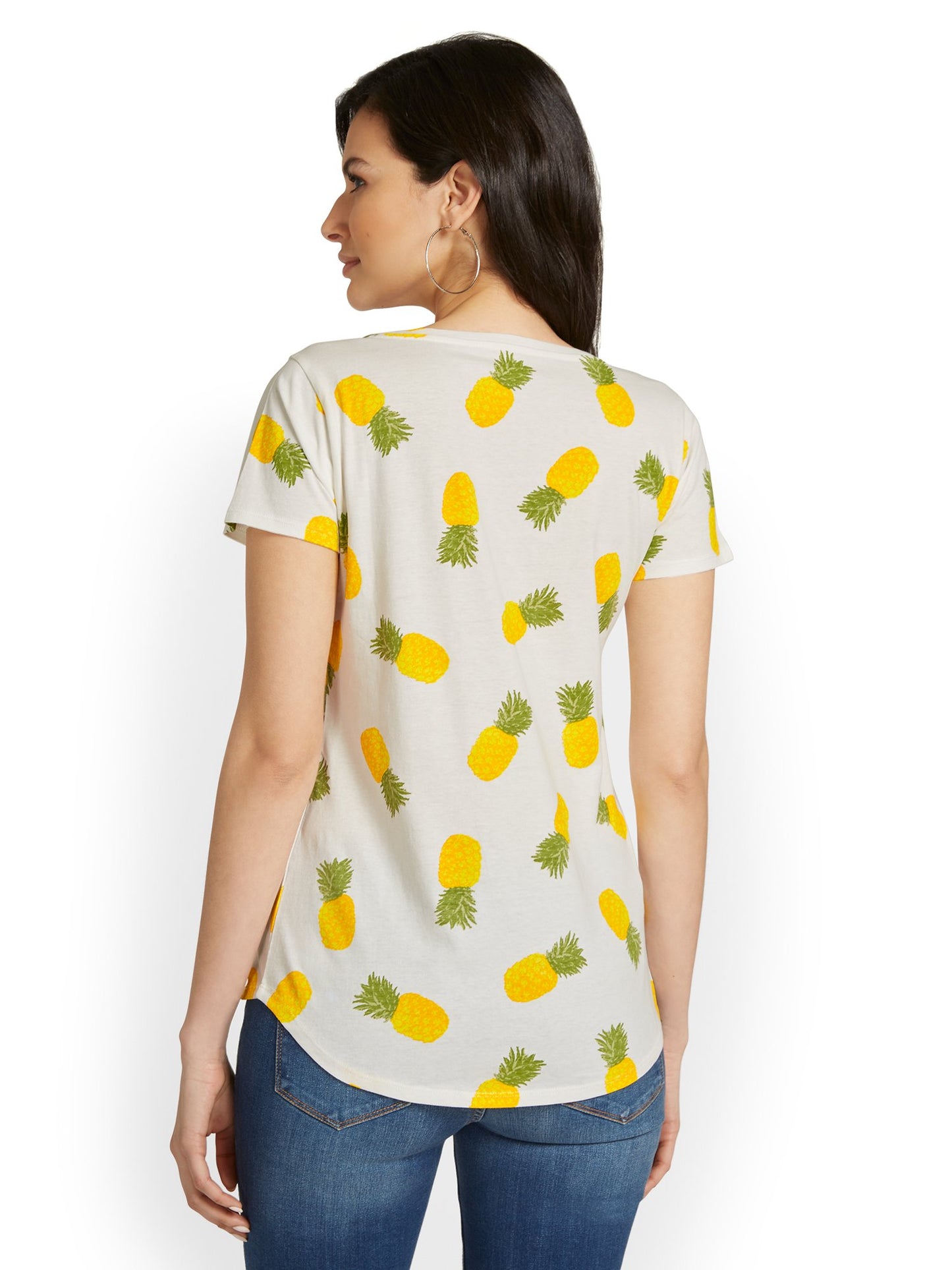 A perfect fit any day of the week, this v-neck t-shirt is rendered in cotton with a playful pineapple print.