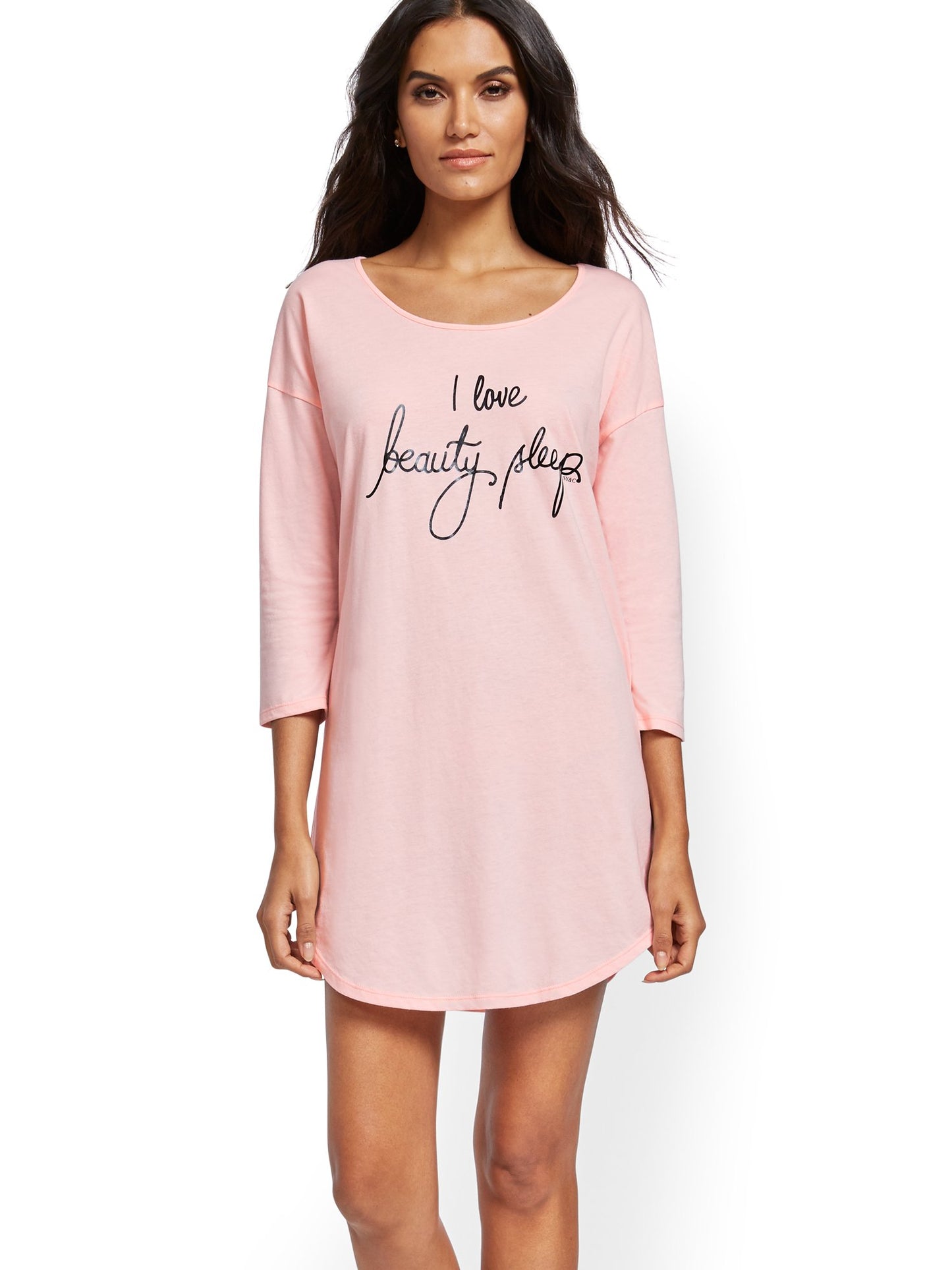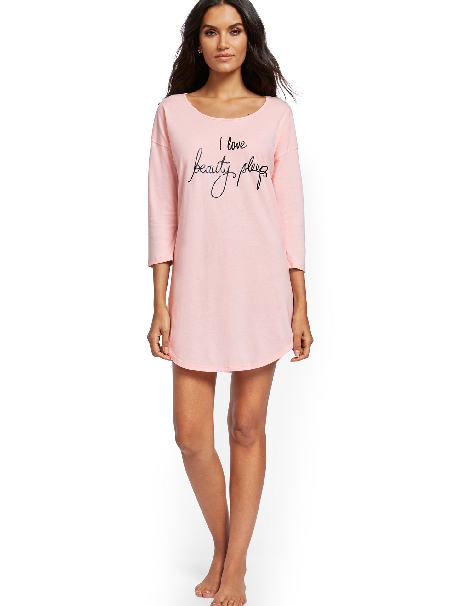 Get your beauty sleep in style! A soft rose hue infuses our whimsical sleep dress with feminine flair.