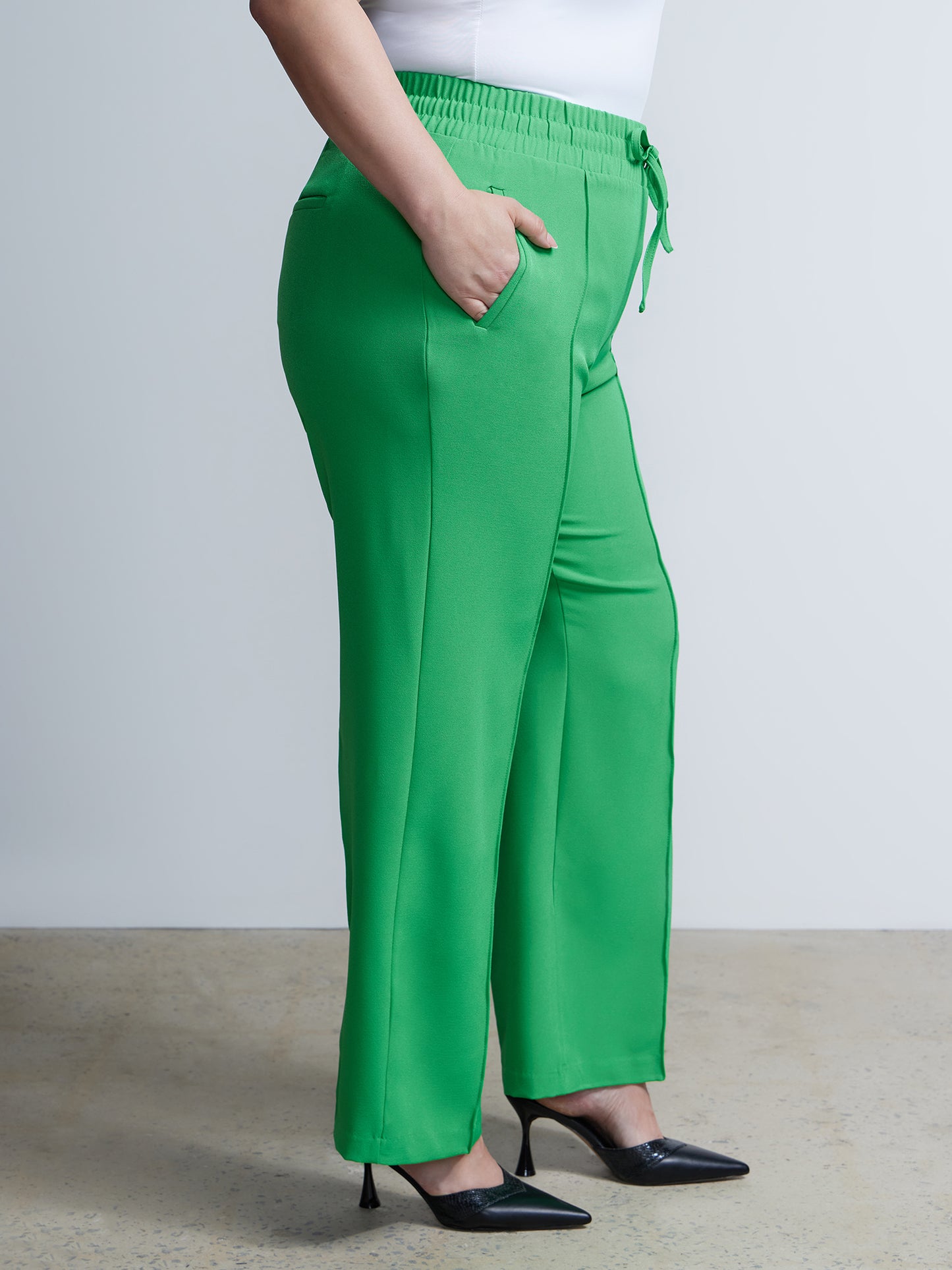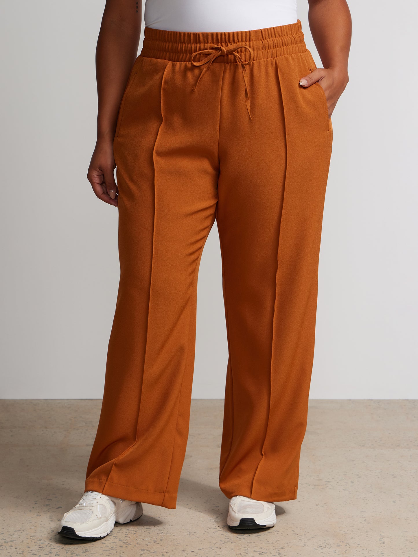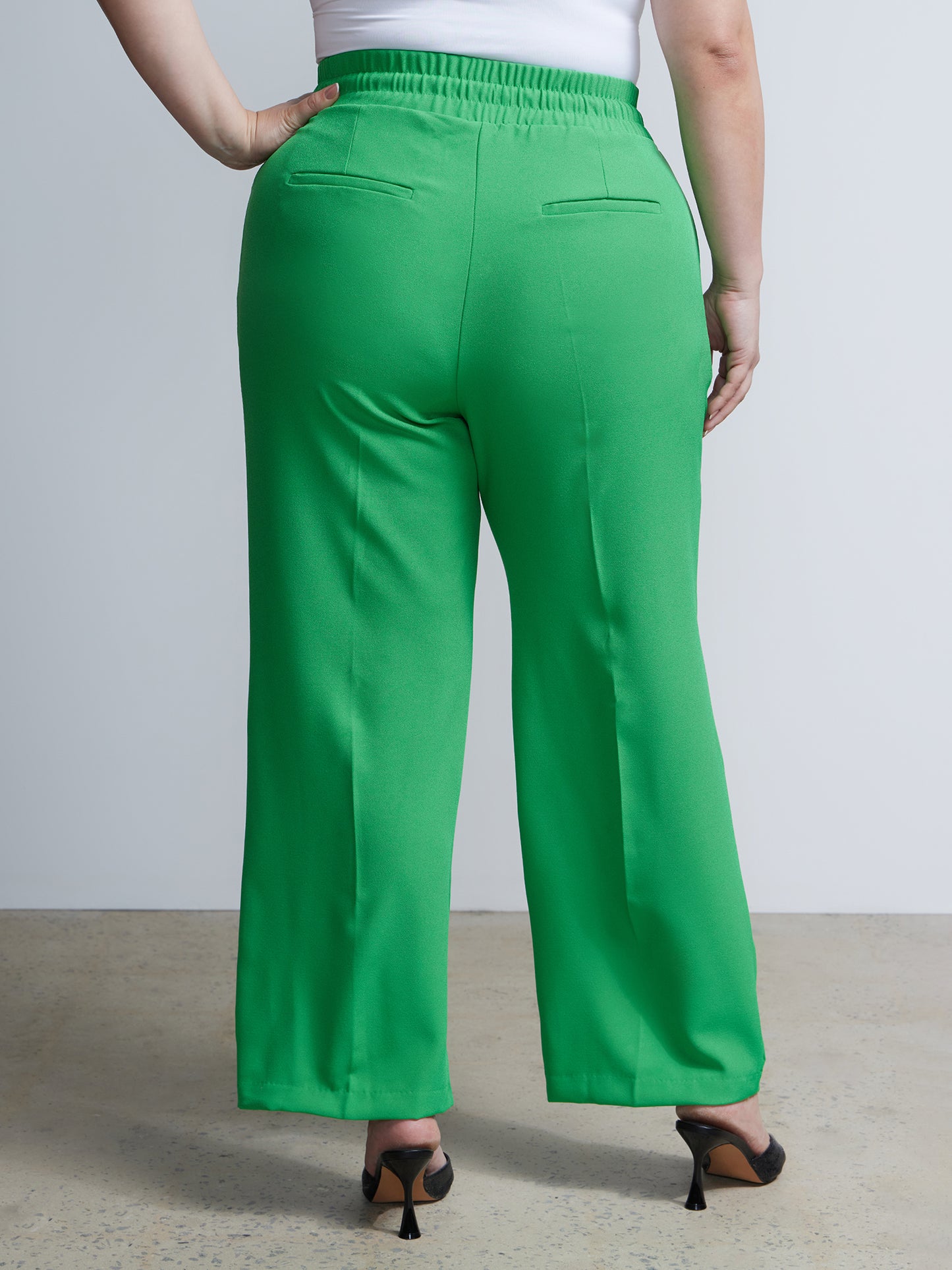 Effortless sophistication meets comfort in these wide leg pants. The elastic waistband and drawstring closure offer a perfect fit, while side and back pockets provide functional finesse. Elevate your ensemble by pairing them with a tucked-in blouse and statement accessories for a chic look.