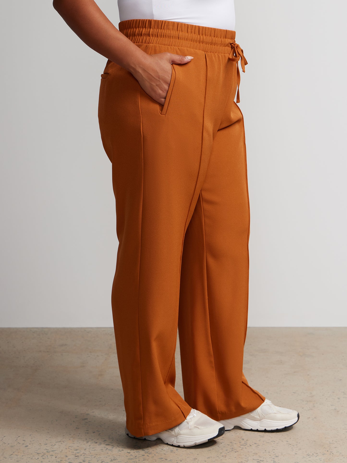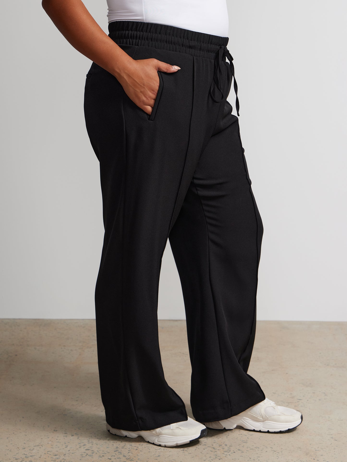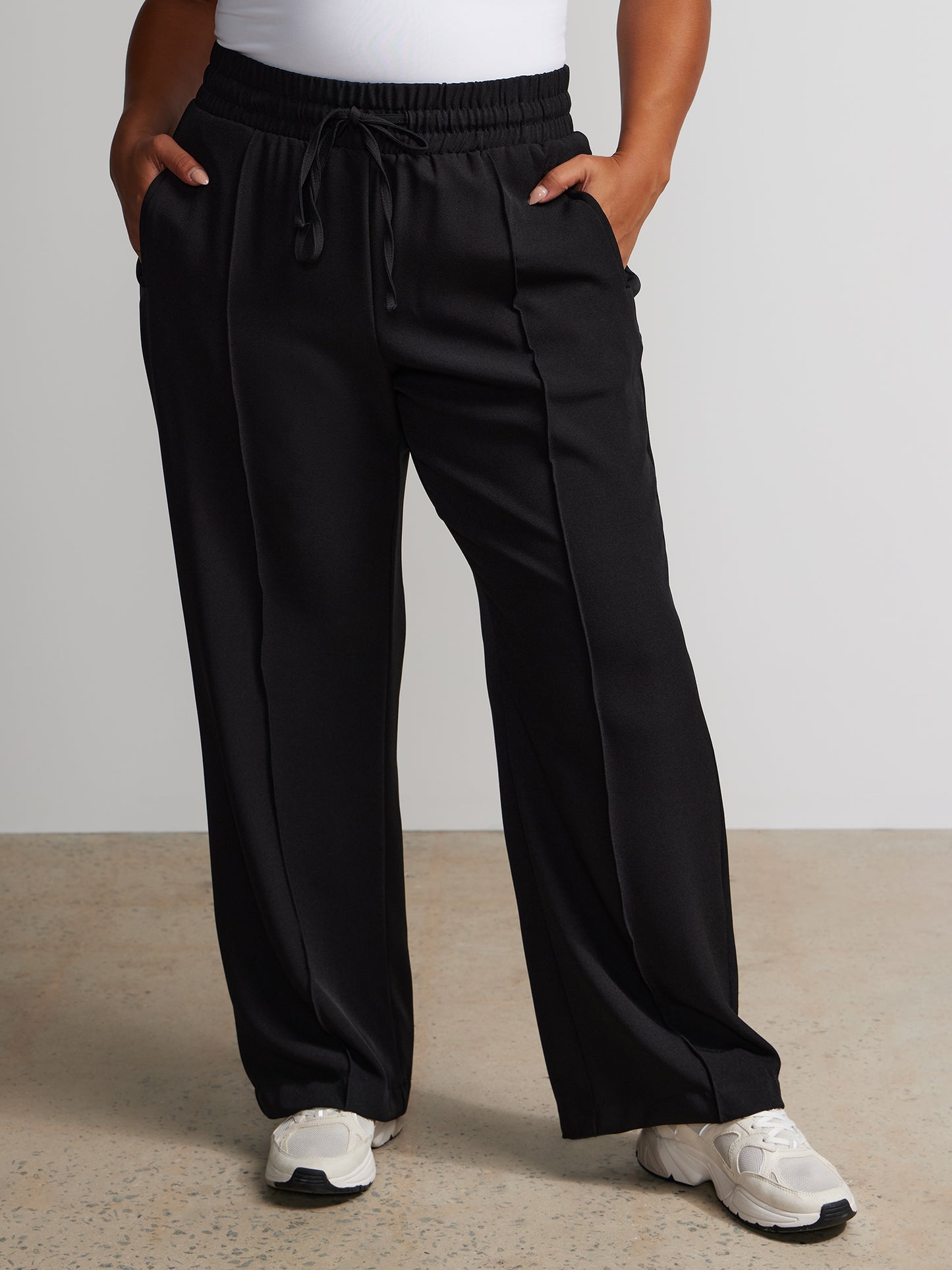Effortless sophistication meets comfort in these wide leg pants. The elastic waistband and drawstring closure offer a perfect fit, while side and back pockets provide functional finesse. Elevate your ensemble by pairing them with a tucked-in blouse and statement accessories for a chic look.