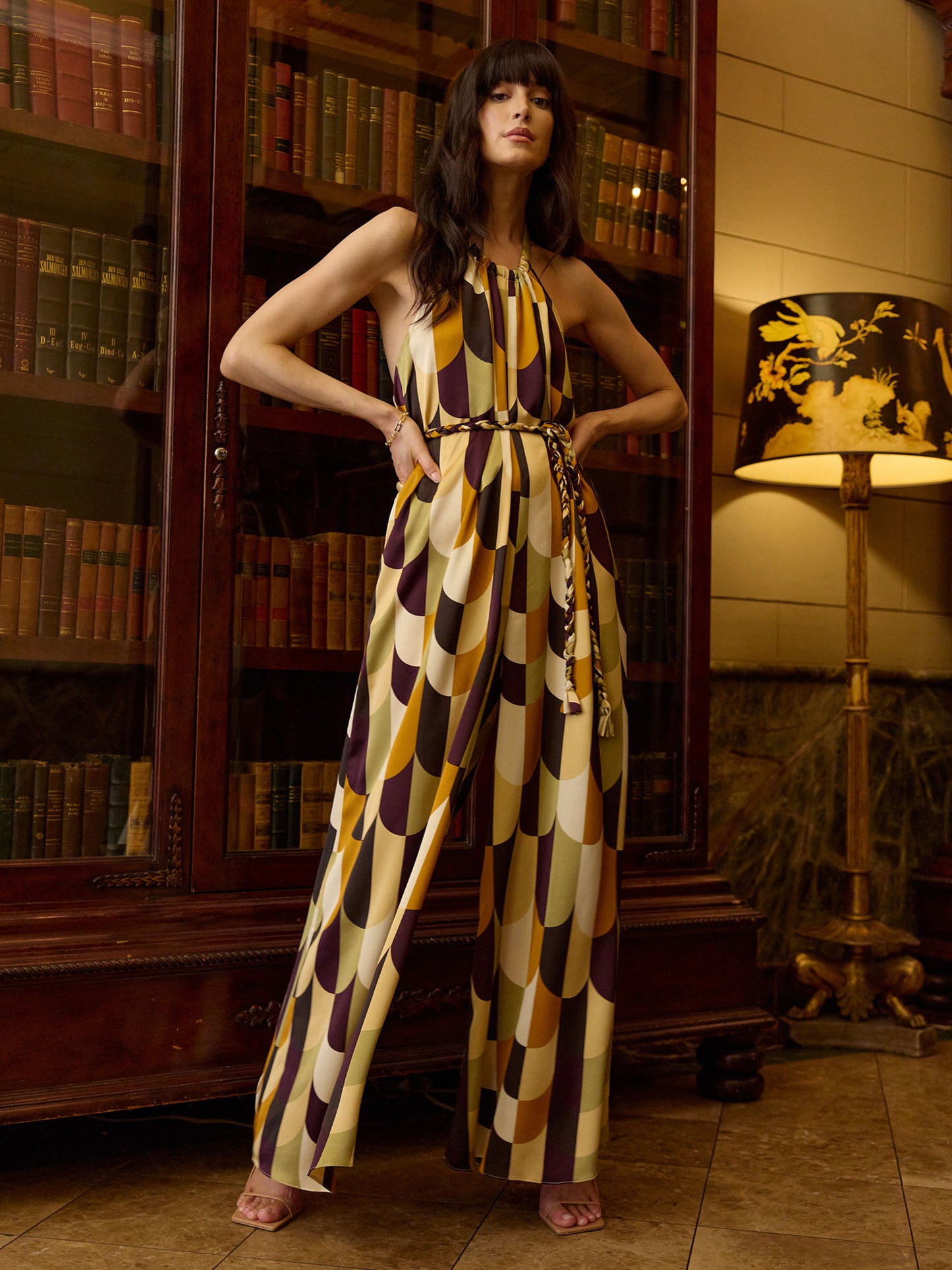 Dress like a 70's diva with this uber-chic jumpsuit. The backless design is a sexy addition to this gorgeous number.