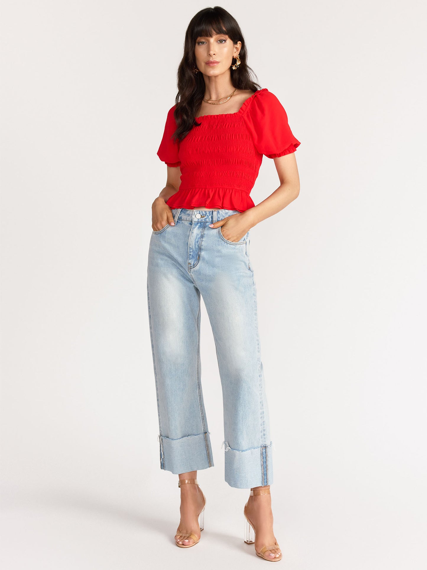 A perfect everyday essential, this cute top features a smocked design that embraces your curves. Pair it with your favourite denim for a simple casual look.